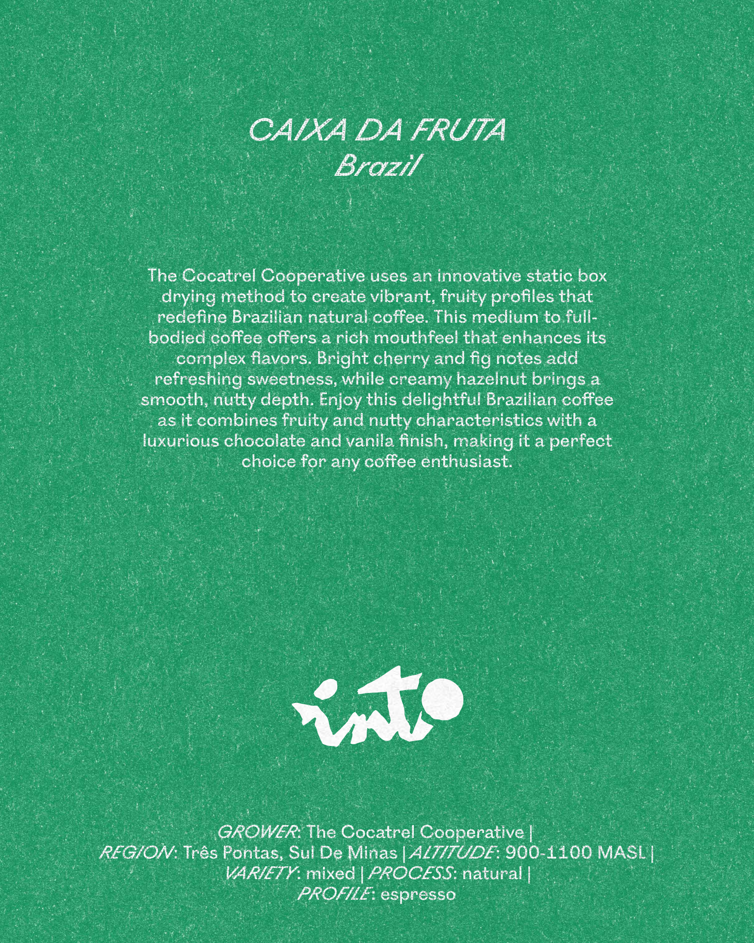 The Cocatrel Cooperative is now the second largest cooperative in Brazil with over 6,000 dedicated members. Their innovative drying method in static boxes allows for the development of vibrant, fruity profiles that redefine what Brazilian natural coffee can be.