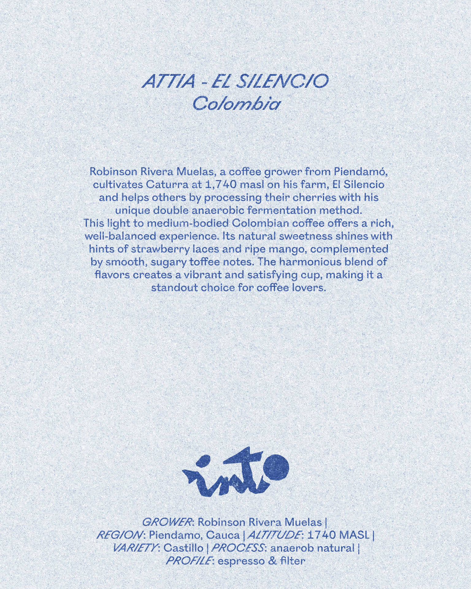 Meet Robinson Rivera Muelas, a dedicated coffee grower from Piendamó, Cauca. At his farm, El Silencio, he nurtures the Caturra variety at 1740 masl and he also supports fellow growers by processing their cherries with his unique double anaerobic fermentation method.